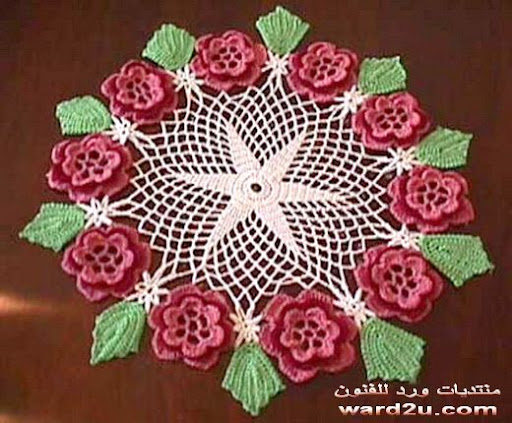 مفارش كروشيه بالورود لديكور انيق