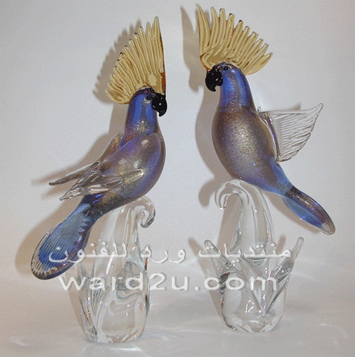 عصافير وطيور ملونة من زجاج شفاف ومورانو